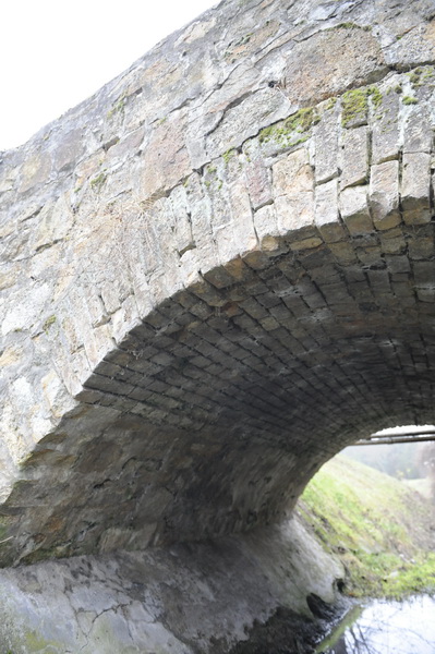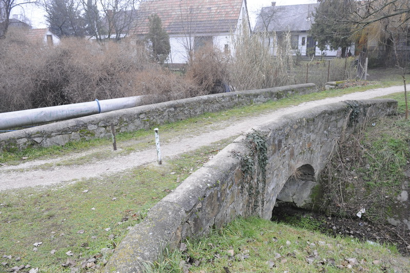 A képen jól látható, hogy a híd boltívét téglából, a többit terméskőből készítették. A korlát a főív fölött itt is terméskőből készült.