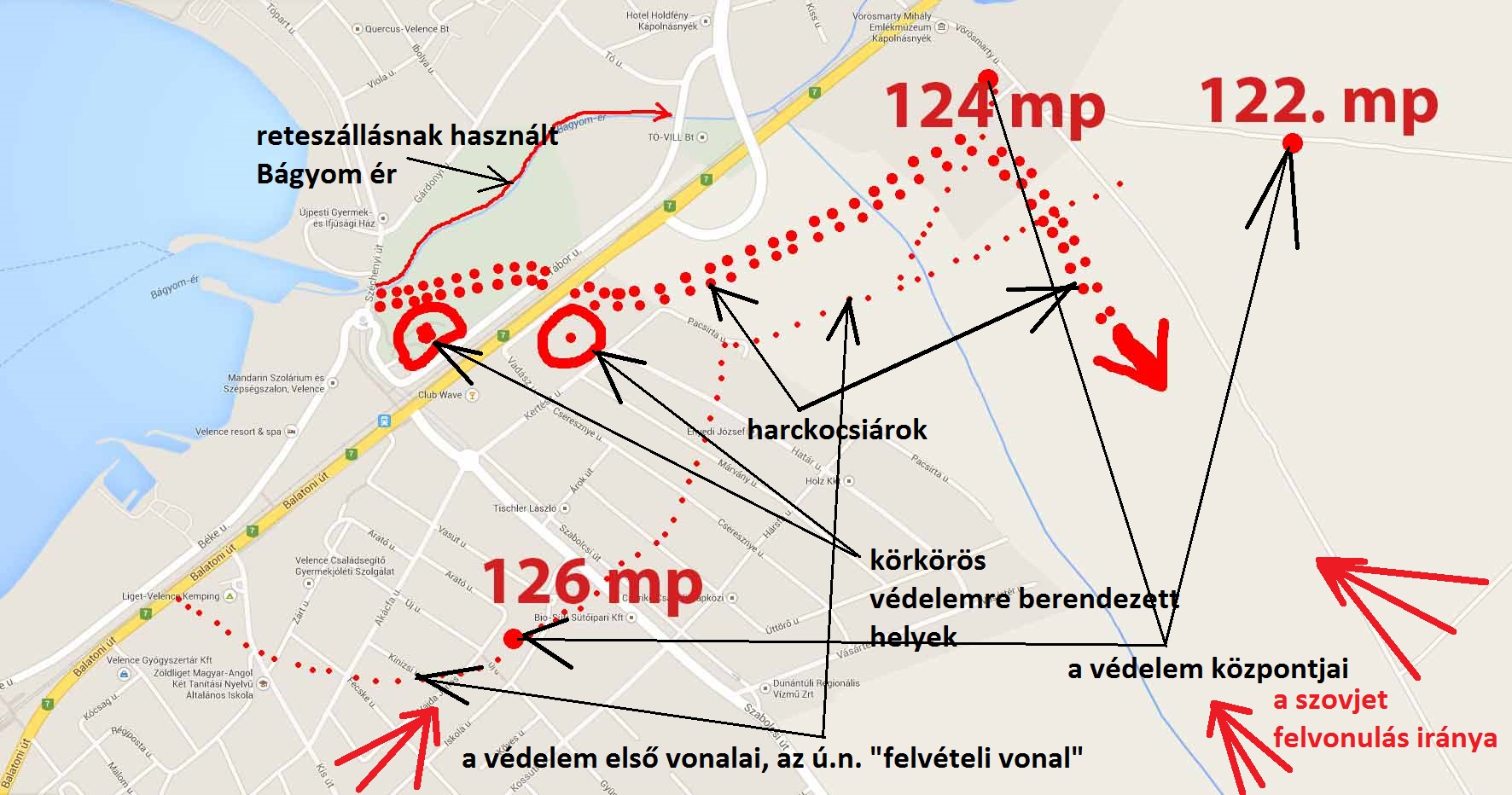 Velence esetében fő védőöv első állása hozzávetőleg a vasútvonalra esett.