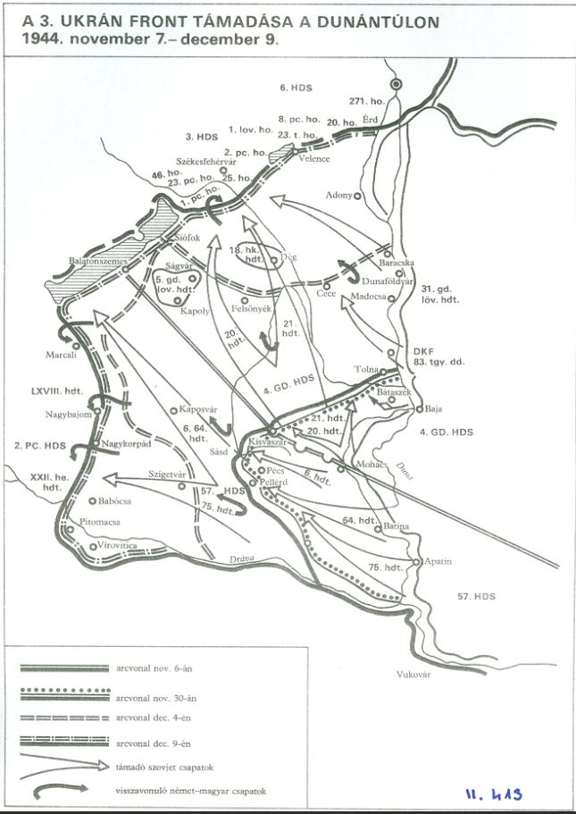 December 22: A 3. Ukrán Front áttöri a fő harcvonalat. Székesfehérvártól Martonvásárig a szovjet kezdeményez. Székesfehérvárért 22-e délben kezdődik a harc. Német belső hadműveleti viták miatt szovjet előretörés, elvágják a Bp-Bécs vasútvonalat. Budapestet gazdaságilag – hadászatilag körülzárják.