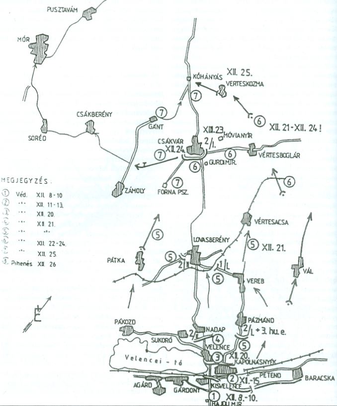 December 21: A szovjetek komoly harc nélkül túljutottak Pázmándon.Nadapon utcai harcok. Az II. huszárezred Tomka által vezetett osztályának maradéka Vereben küzdött.