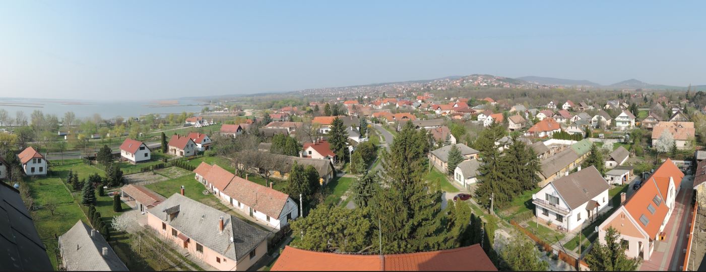 (A fotót a templom mögötti fenyő megnövekedése miatt eredeti helyéről, az ablakból nem lehetett újból elkészíteni, ezért feljebb másztunk, a tetőhöz. Ez kissé megváltoztatta a kép szögét.)