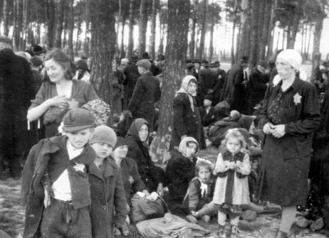 11.kép: Magyar zsidó deportáltak várakoznak a birkenaui gázkamra körüli ligetben a sorukra 1944. májusában (forrás: Yad Vashem Intézet)