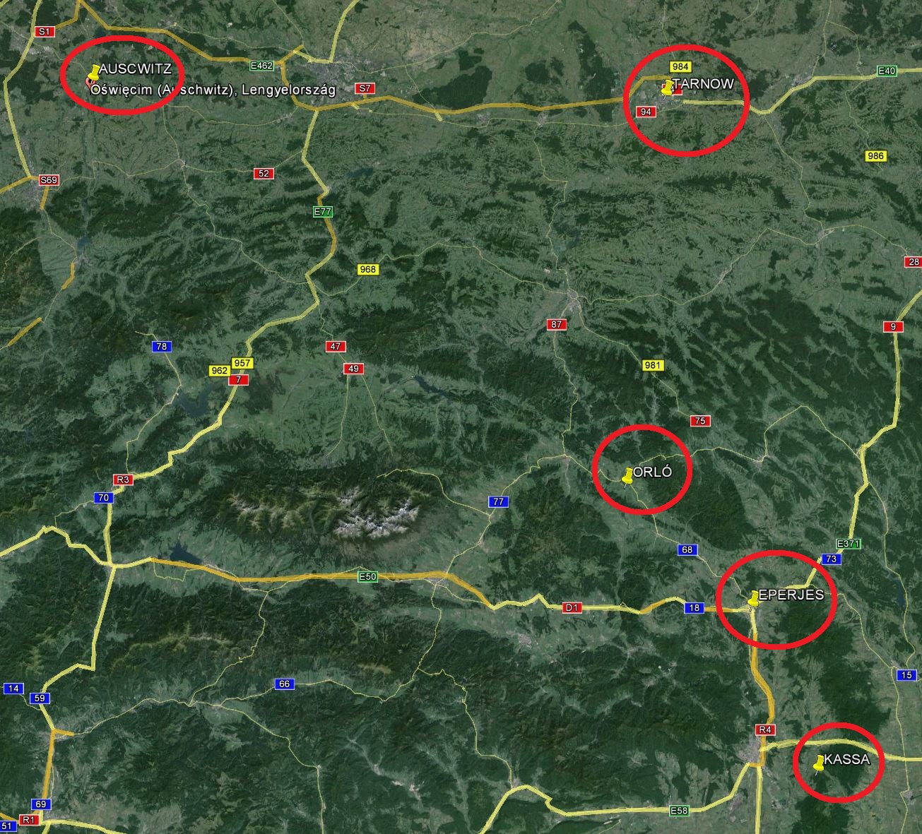 (Megjegyzés: A leírás alapján a transzport a Kassa – Odeberg Vasútvonalán haladt Tarnowig. A jelentősebb állomások: Kassa, Eperjes, Orló, Tarnow.)