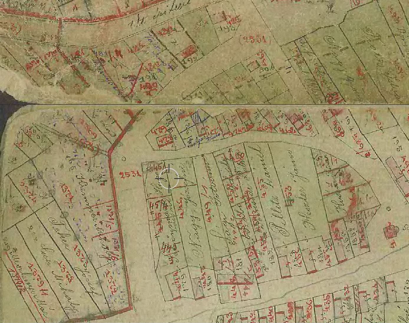 Próbáltam embereket, családneveket találni mindehhez. Az 1880-as (nagyon nyúzott állapotú) kataszteri térképen az alábbi telektulajdonosok nevei olvashatók:
