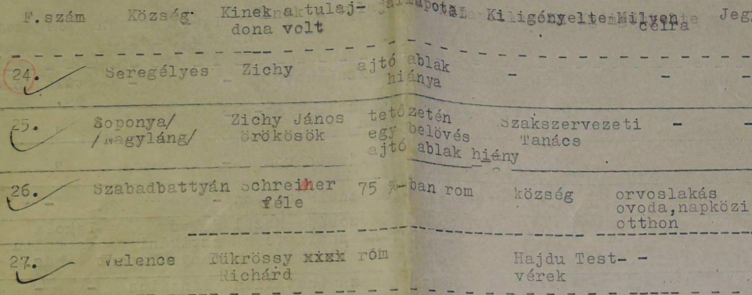 1.kép: Az Elhagyott Javak Kormánybiztossága számára készített jelentés Tükrösre vonatkozó részlete (forrás: Fejér Megyei Levéltár)