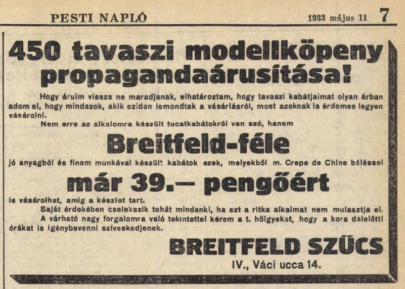 Néhányakra emlékszem az ő valamikori inasgyerekeiből. Ez azért nagyon emlékezetes, mert ez a Breitfeld zsidó ember volt. Tanultak nála kis ortodox gyerekek is, meg mások is. Anyukám, aki felügyelőjük is volt, meg tanította őket, nagyon katonásan vigyázott arra, hogy a pajeszos gyereket nem szabad kicsúfolni. A vallása miatt senkit nem engedett bántani. Nagyon komolyan védte ezeket a gyerekeket.
