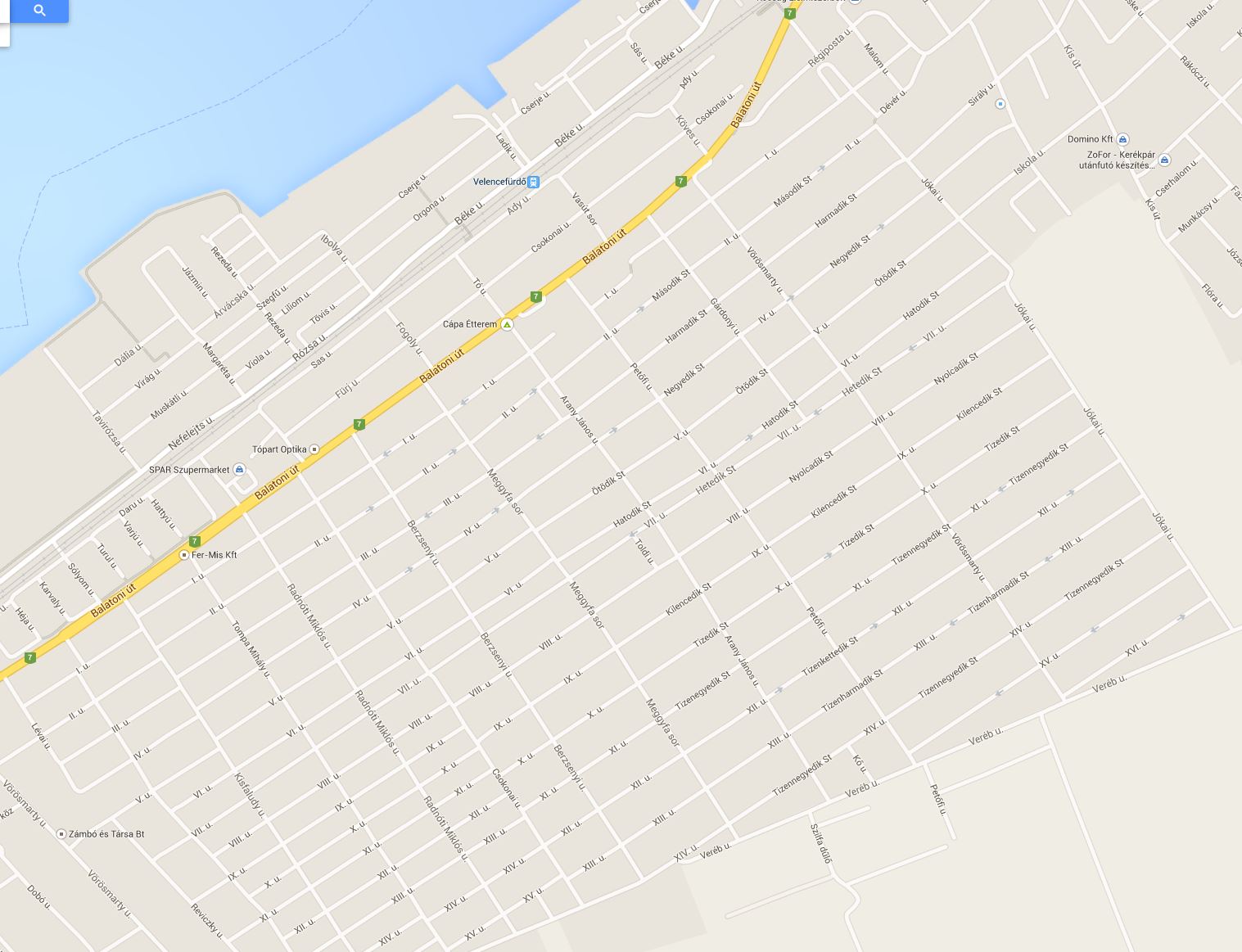Az alaptelep kezdetben a 70-es úttól a VI. utcáig tartott, a VI. utca túloldala már kukoricaföld volt. Kezdettől így nevezték el az utcákat. Az országúttal párhuzamos utcák számozottak, a merőlegesek magyar írók-költők voltak. Ez annyira bevált, szellemes volt, hogy nem változtattak rajta. Ha én ma azt mondom valakinek, hogy a II. utcában lakunk a Gárdonyi meg a Vörösmarty utca között, akkor ő tudhatja, hogy az maximum 3-4 házat jelenthet. Jól lehetett tájékozódni ezzel.