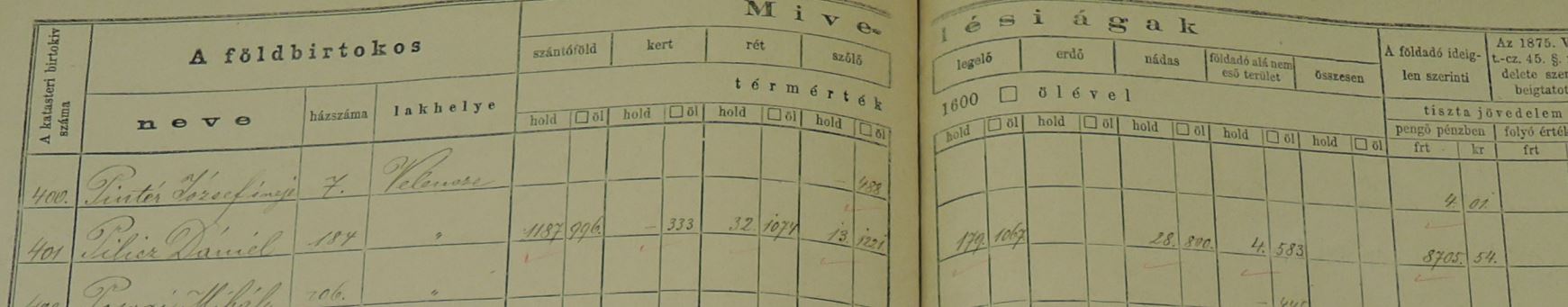 1884-ben a kimutatás sokkal pontosabb volt és sokkal több maradt meg belőle. Még számos dűlővel nem végeztem (ezért hiányoznak pl. a szőlők), mégis, a már meglévő adatok azt mutatják, hogy földjei kissé nőttek a hét év alatt.