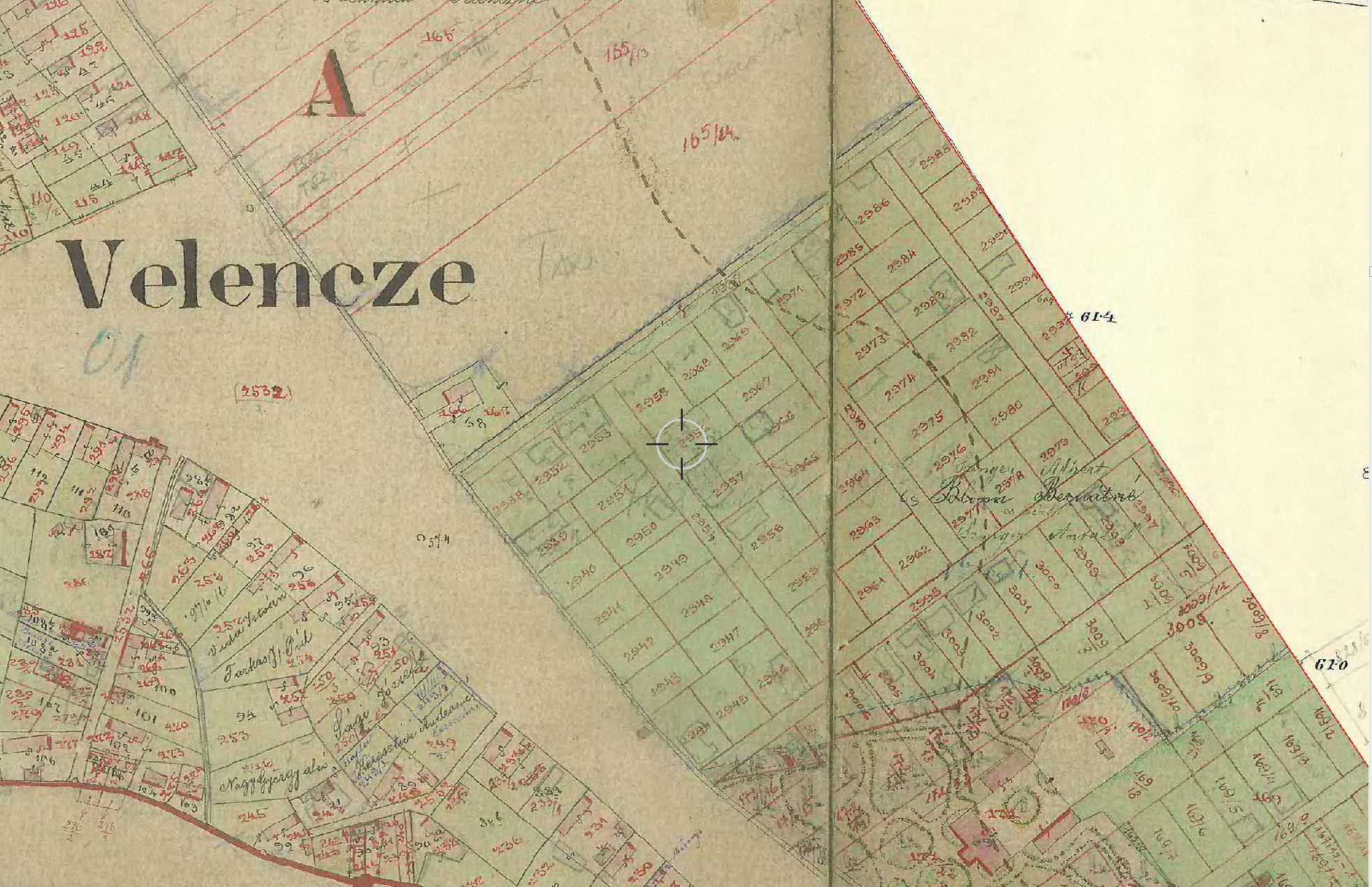 Feltevésem szerint a „Felső nyék” dűlő volt déli része az 1880-90-es években részben beépült és sűrűn tulajdont váltott. Bár vitathatatlan, hogy ez a dűlőtérkép része a Magyar Levéltári Portál digitális térképének és a kutatási program elvben 1884-et írja le, de a magas sorszámú helyrajzi számok (2938-tól 3009-ig) mutatják, hogy utólagos sorszámozású területek ezek. Az 1884-es birtokrészletív sorszámozása ugyanis 2650 körül állt meg. A szóbanforgó területet délről határoló későbbi Mandorff-kúria (ma: városi önkormányzat épülete) és a Gurjalt kezdő Meszleny –kastély között a helyrajzi számozás ismét visszaállt a 169-211 közötti tartományba.