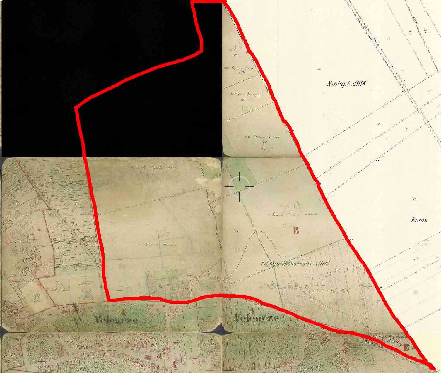 A dűlő a korabeli kataszteri térképen (Nagyításért kattints a képre!)