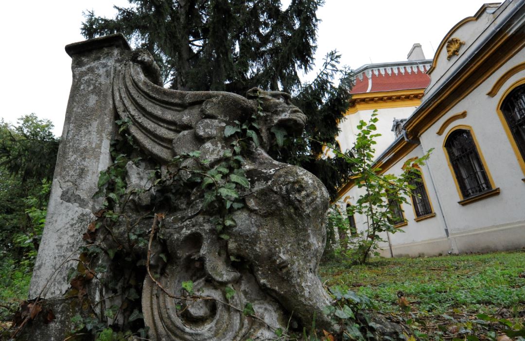 A Burchard-Bélaváryak „ittfelejtett” címeres- griffes padja a Meszleny-Gschwindt-kastély parkjában