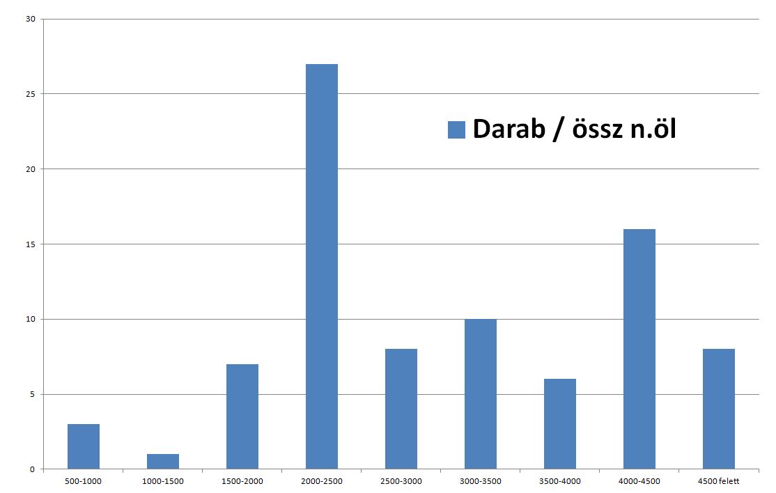 Az egyes helyrajzi számok mérete két kataszteri hold, a tulajdonosonkénti összegzett birtokméret 3,7 kataszteri hold körül alakult. Meg kell jegyezni, hogy ezek átlagtól eltérése miatt a viszonylag leggyakoribb egyedi parcellaméret bő 1,5 kataszteri hold volt. Viszonylag komoly volt a birtokméretek szórása (átlagtól való átlagos eltérése) és azok darabolódása, szétszóródása a dűlőn belül.