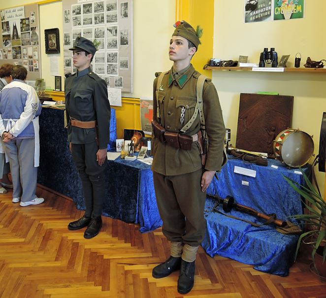 Két fiatal díszelgett a Velencei Helytörténeti Egyesület kiállításának megnyitóján. Az ikertestvérek egyikén az első, másikon a második világháború magyar katonai egyenruhája. Önérzetesen viselték az egyenruhát és a szerepet. A kiállításon avatottan válaszoltak a kérdésekre. Tizenhét évesek.
