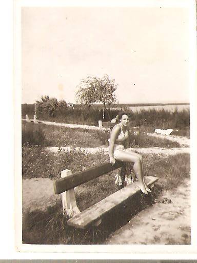 FÁ: A fotókon sok feltűnő van. Kezdem a fürdőruhás hölgyeken! Képzeld el, hogy 1936-ban, legfeljebb öt –hat évvel a nyaralókorszak kezdete után polgári ruhások, sőt, ismeretlen, fiatal lányok tűntek fel, akiket alaposabb tájékozódás után nyaranta fürdőruhában is láthatott a falu inghez-szoknyához-begombolkozottsághoz szokott lakossága. Ráadásul ezeknek az embereknek némi pénze is volt, ami jótékonyan hozzájárult a szegény környék megélhetéséhez. Ez jelentős változás volt mindenféle értelemben!