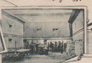 Az első lapon látható egy kissé homályosra sikerült fotó a malom belső udvaráról, gabonás vagy lisztes zsákokkal, rakodókkal és a kisvasút kocsijával. Mivel a gőzmalomba az őrlendő gabonát vasúton szállították és a lisztet is vasúton vitték a megrendelőkhöz, közeli vasútállomásra vezető kis lejtésű vágány jó szolgálatot tehetett. A háttérben álló két ló azt igazolja, hogy a malom és a vasútállomás közti ipari vágány lóvasútként működött ebben az időben, a képen pedig a kisvasút felső „végállomását” látjuk. A baloldali kocsi külön síneken áll, tehát a malomban a kisvasúttól független vágányrendszer segíthette a belső anyagmozgatást.
