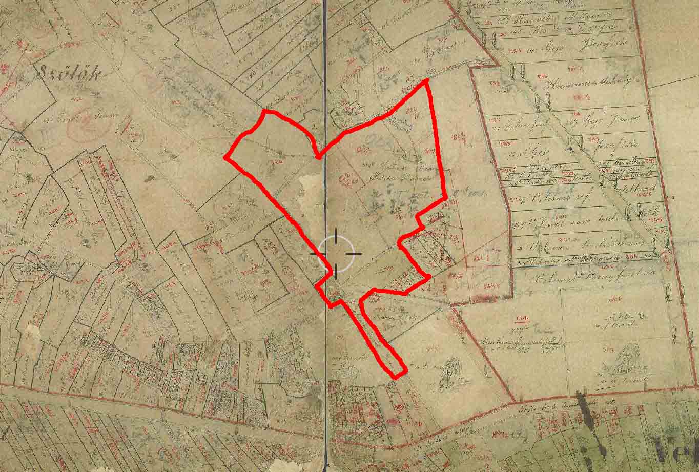 A Beck-féle szőlőterület kiterjedése 1915-ben (Nagyításért kattints a képre! A kép jobb oldalán a Nadapi út látható)