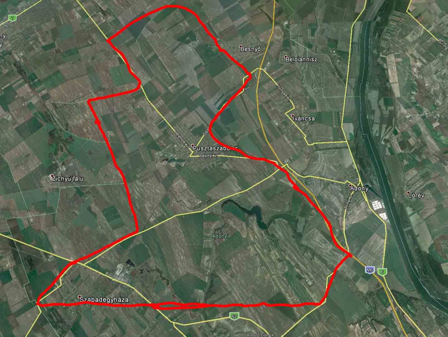 Az 1953-as üzemi térkép alapján vélelmezett gazdaság kontúrjai a mai Google -térképen (Nagyításért kattints a képre!)