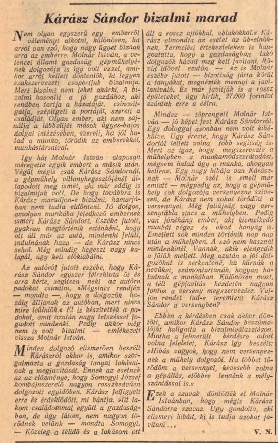 Ez a cikk (ugyancsak Népszava, 1953.) is a „miénk”