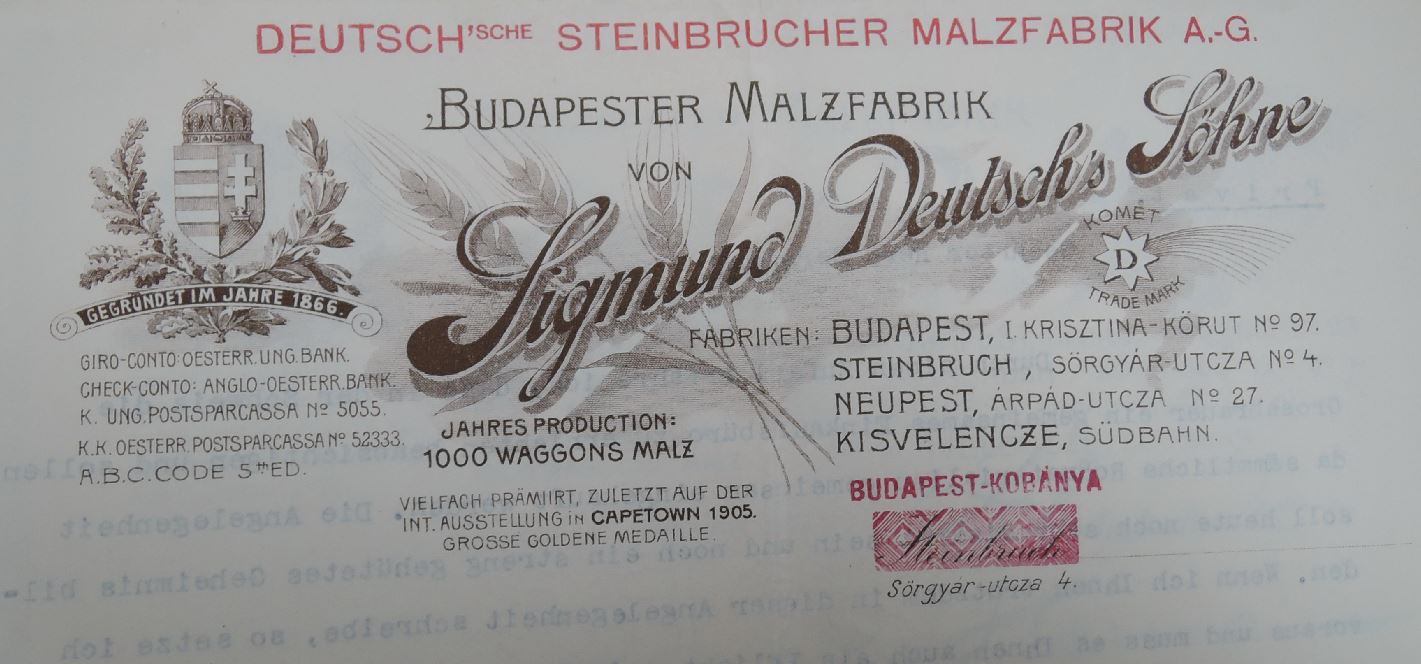 • Magyar Országos Levéltár (MOL) (Lángliliom utca) A Deutsch –féle Kőbányai Malátagyár RT anyagai Z 756-761 fond