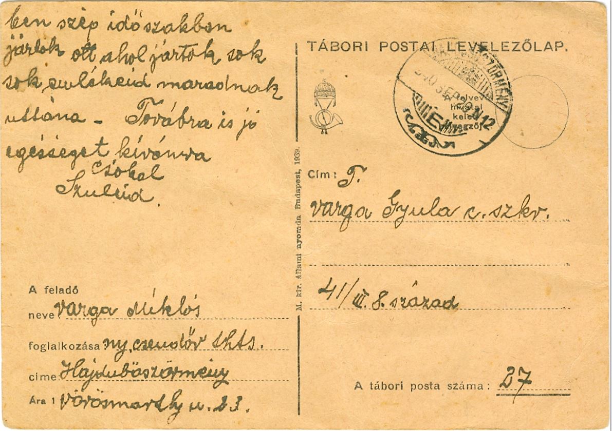 1941-ben születtem, Varga nagyapám az év nyarán meghalt, őt nem ismerhettem. Apám katonaéveit nem egyhuzamban töltötte, hanem az első időkben magyar földön.
