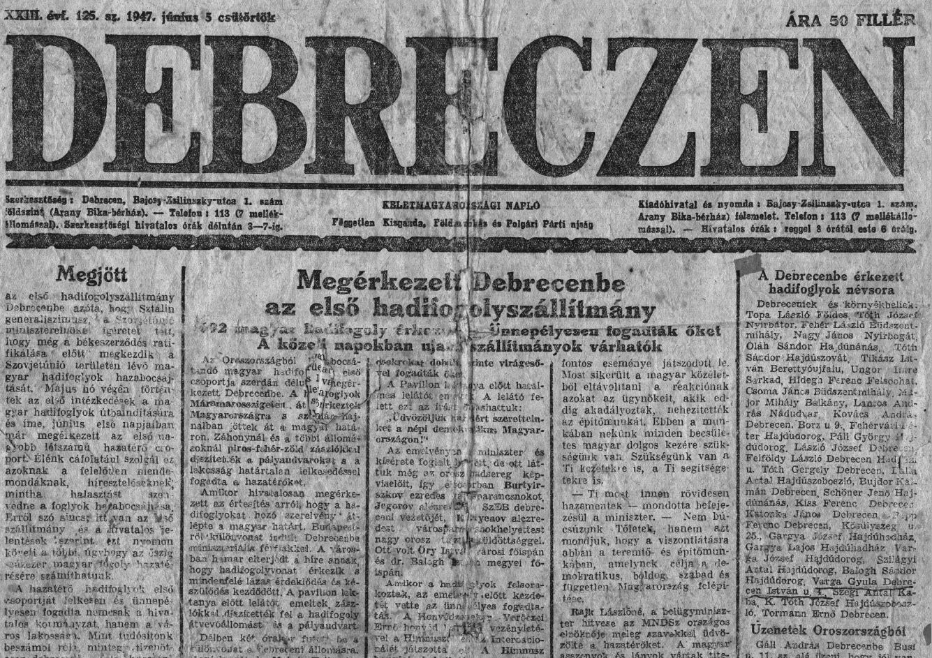 [11] Gyerekként folyton unszoltam Nagyapát, meséljen a háborúról. Sohasem tette meg. Csak azt tudjuk (Gyuszi Nagybátyán húzta ki belőle), hogy az orosz fronton került hadifogságba és Szibériában volt fogoly. Az segítette a túlélésben, hogy kereskedőként nagy rutinja volt a mérésben. Megbízhatóan porciózta ki a kenyeret. Ennek ellenére végletesen soványan, tetvesen, betegen, de élve(!) jutott haza-szemben oly sokakkal.-FÁ