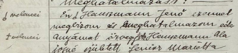 Két nappal a gyámság iránti kérelem visszavonása után (tehát 1927. június 20-án) ugyanannál a közjegyzőnél Hauszmann Jenő nyilatkozatot[5] tett.