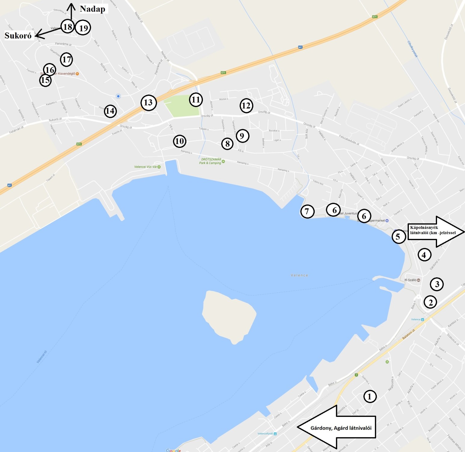 Ötödször: Három tájékoztató pontnál (1: Gárdony, Agárd; 4: Kápolnásnyék; 16: Nadap, Sukoró) a környékbeli településekre való kitérő propagálása, a lehetőségek és a távolságok, időigény feltüntetésével. Ez születhet az adott település közreműködésével – s talán a későbbi együttműködést is segítené.