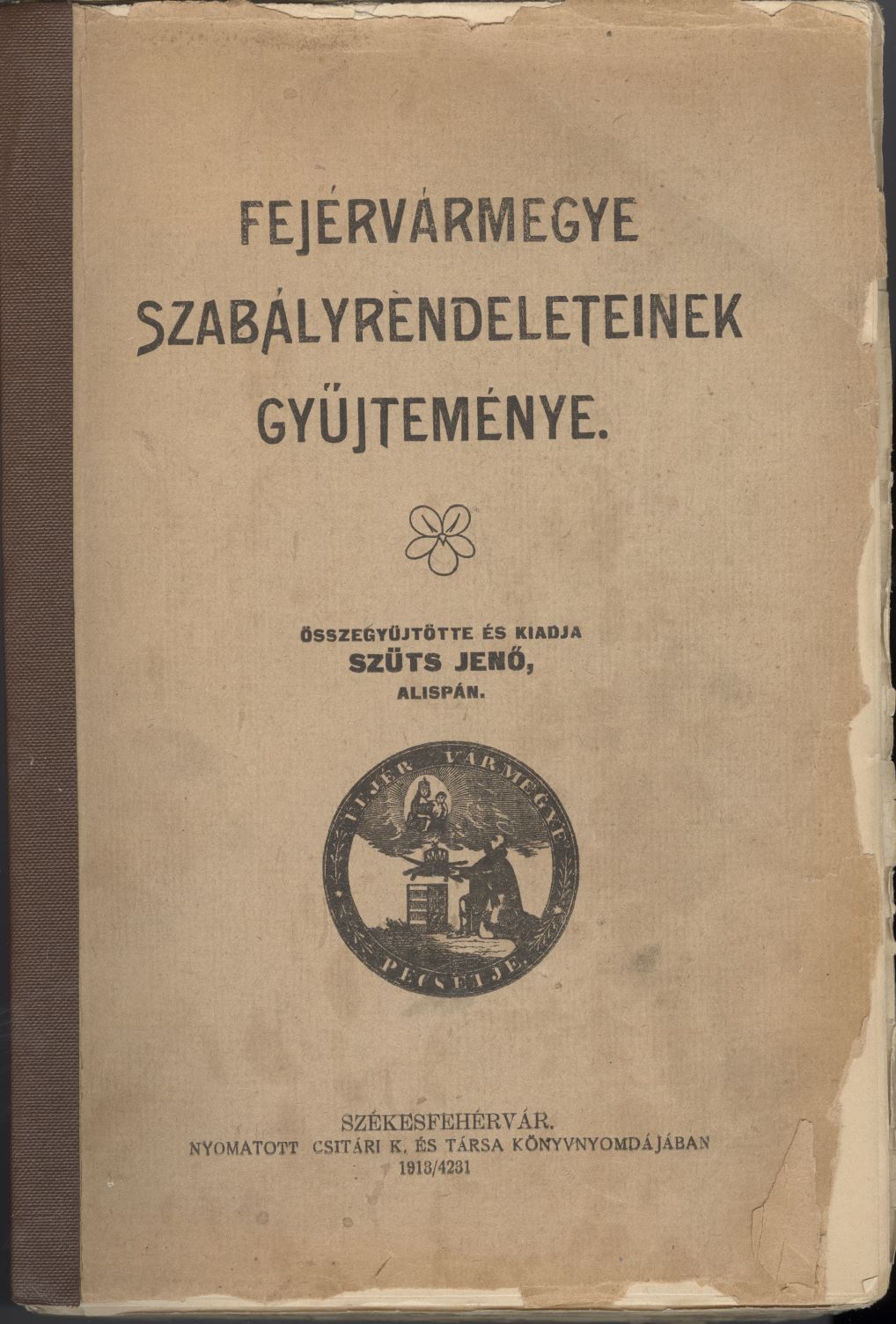 - Fejérvármegye szabályrendeleteinek gyűjteménye (Csitári és Társa, 1918)