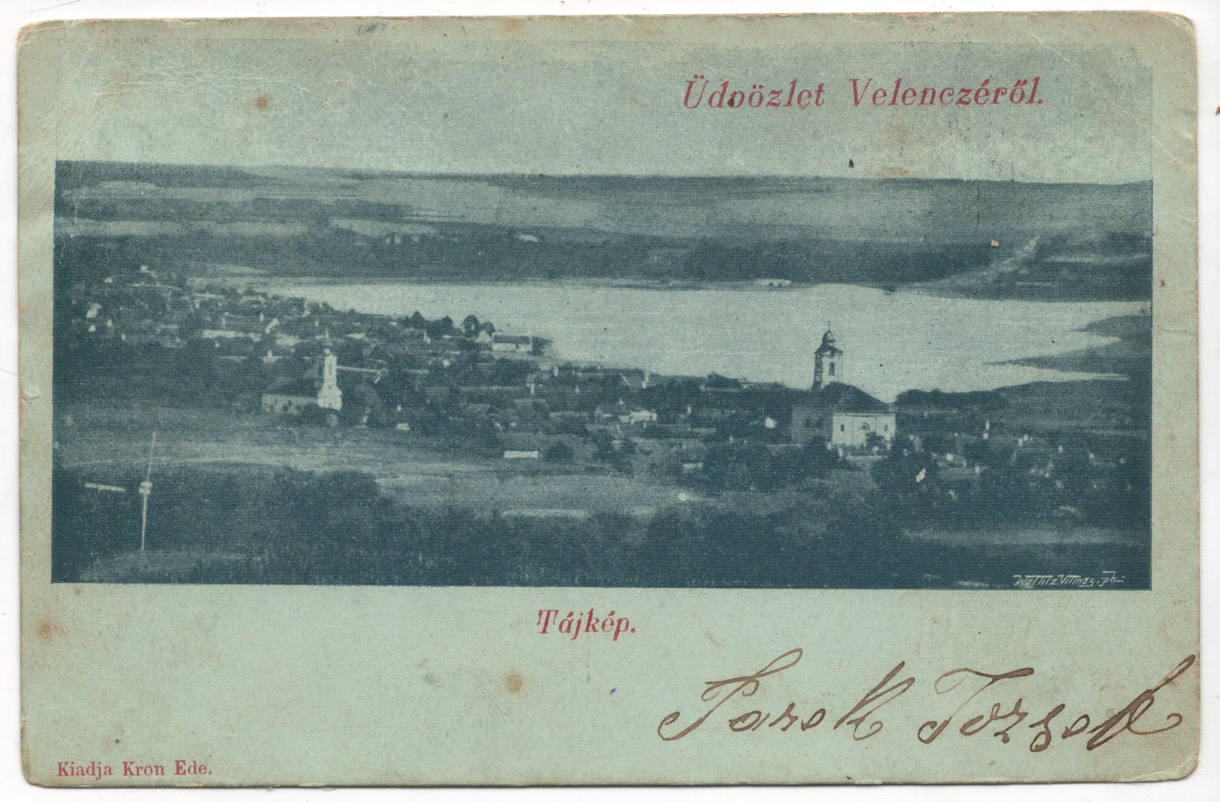 Előbb vegyük az azonosságokat:1) Mindhárom képeslap „hosszúcímzéses” (a hátoldal csak a címzésre szolgált, írni csak a képes felére volt szabad), így mindhármat 1905 előtt nyomták.2) A fénykép azonos a három lapon, mindhármon Wottitz Vilmos budapesti fényképész-nyomdász (a többi korai fényképhez hasonlóan) szignálta a fotót.3) Mindhárom lapon azonos a felirat szövege: „Üdvözlet Velenczéről” és „Tájkép”.4) Mindhárom kápolnásnyéki megjelentetésű (ez a feliratokból nem derül ki, csak a környékünk helytörténetében jártasak számára világos.)