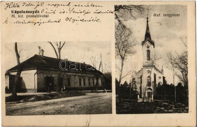 A kép érdekessége a kor. Az a kor, amiben a katolikus templomnak még szép, gömbölyded tornya van, az 1917-es tűzvész előtt tehát. Ma hegyes sisakja van, ami egészen mássá teszi a torony eredeti karakterét.