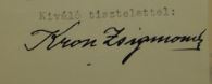 Kron Zsigmondról nem maradt fenn általam ismert fotó. Egy vármegyei kérelme okán azonban ismerhető az aláírása. Az így fest:
