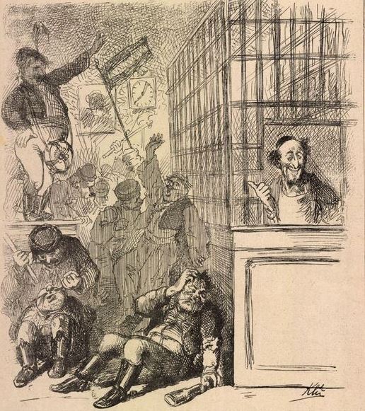 — Nem megyek! — volt a válasz. No jó! Zordon mögötte föltűnik két vasúti bakter, felgyűrt ingújjakkal. Ferenc úr nem Herkules, sőt ellenkezőleg; a konduktor maga is könnyen elbánhatott volna vele, hát még egy konduktor és két bakter. Fogja a pakktáskát és kiszáll. Minden kupéból kíváncsi fejek néznek ki. Nini, elfogtak valami sikkasztót! Nem a, egy antiszemita izgató lesz, a ki léprekerült. De hol maradnak a zsandárok?