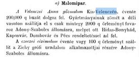 -Salgótarjánból Velencére évi 15 213 mázsa szén érkezik (feltehetően döntően a malmi gőzgépekhez)