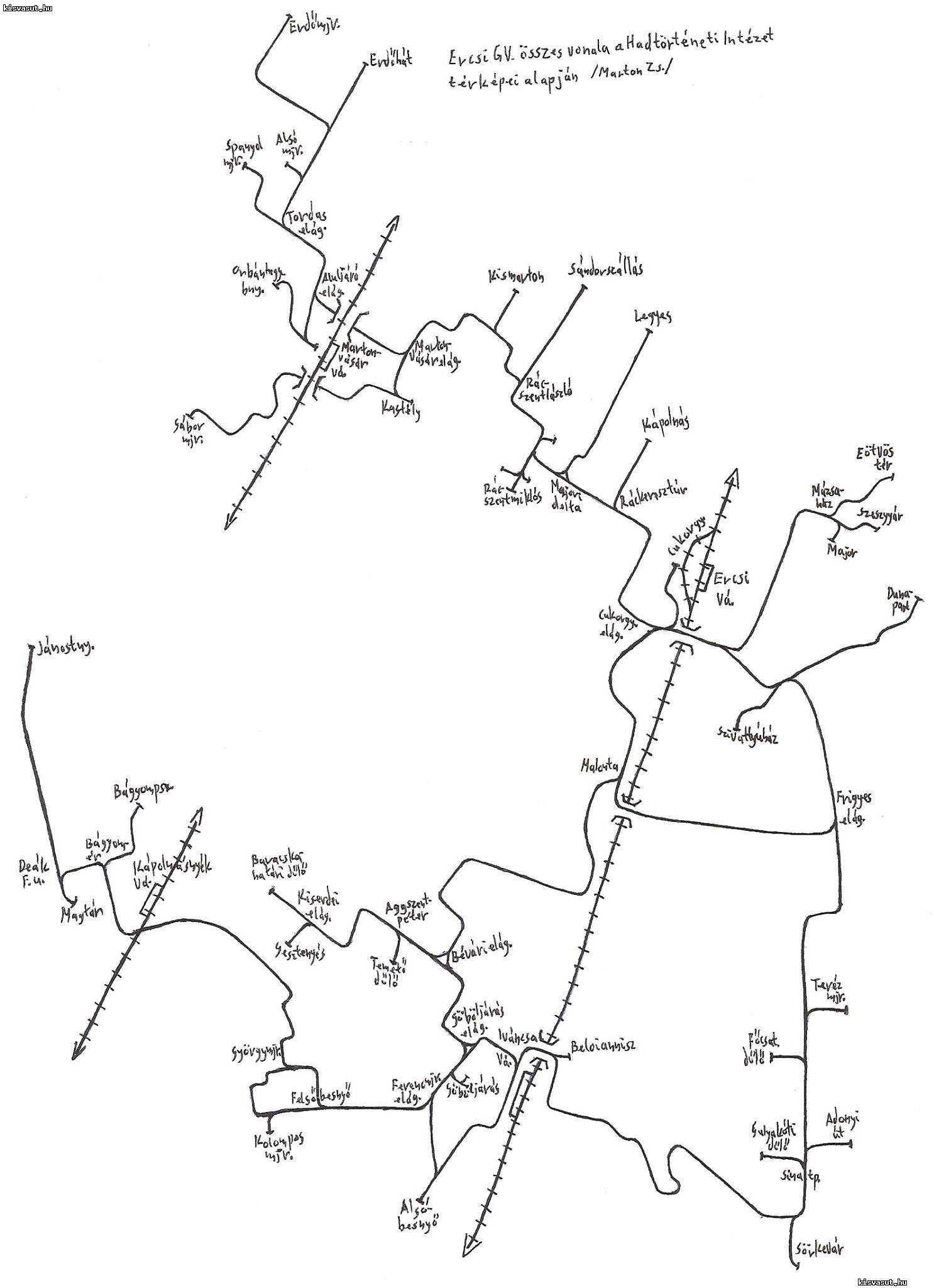 Marton Zsolt térképész-hadtörténész a „Kisvasut.hu” kérésére korabeli katonai térképek alapján összeállította a kisvasút részletes nyomvonalát. Ebben összesen 57 település és tanyanevet említ meg. Ennyit ért el az ercsi kisvasút fénykorában.