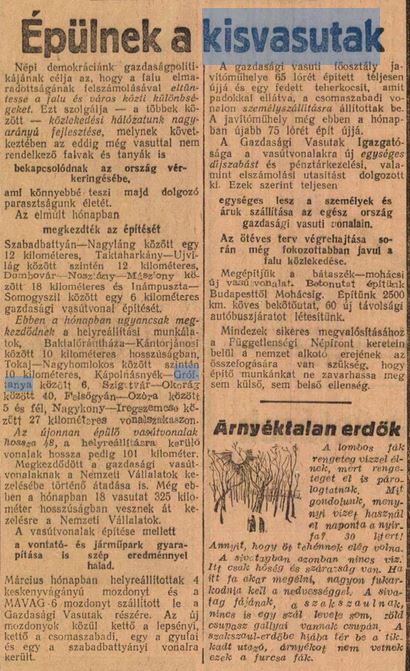 [2] Hasonló céllal, de az 50-es években épült a balatonfenyvesi kisvasút, ugyancsak cukorrépa szállítására, politikai foglyok munkájával.