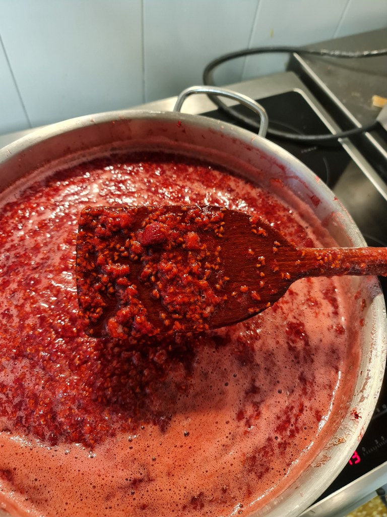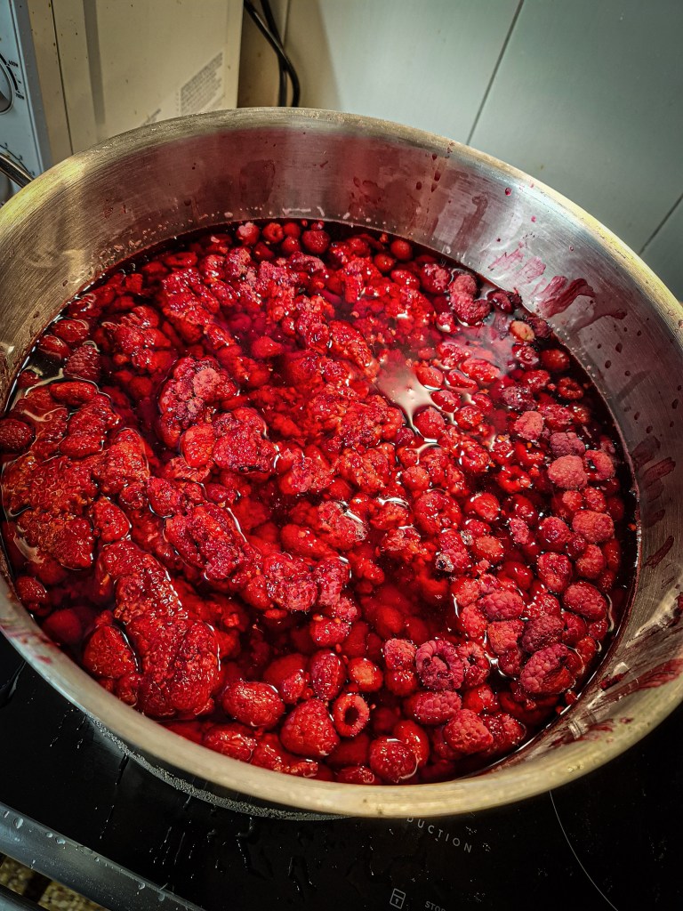 A málnával csínján kell bánni. A szegfűszeg vagy a vastag cukrozás alatt eltűnik légies íze. Cukrot semmit, ha kell, kevés mézet adok hozzá, az ajánlott töredékét, kevés vaníliát és ennyi.