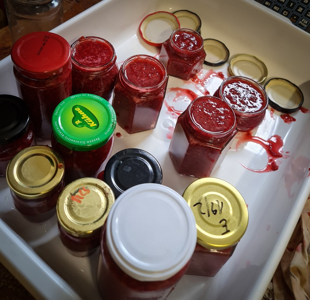 Kilenc kilónyi szunnyadó málnaszem várta a fagyasztóban a feltámadást, ami most éppen hajnalra esett. Idáig nem akadt rájuk időm. Meg persze, vártam, hátha a késeiek is beérnek. Hiába. Maradtak a korai nyár gyümölcsei.