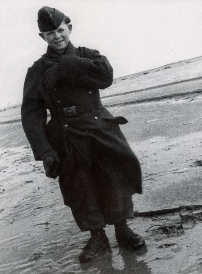 Herczeg Ferenc 14 éves „levente” SS egyenruhában, a Keleti-tenger partján, Woynarovicz gondjaiban -egy a gyerekek közül- (1945. foto: W.E., forrás: Illésfalvi 2007.)