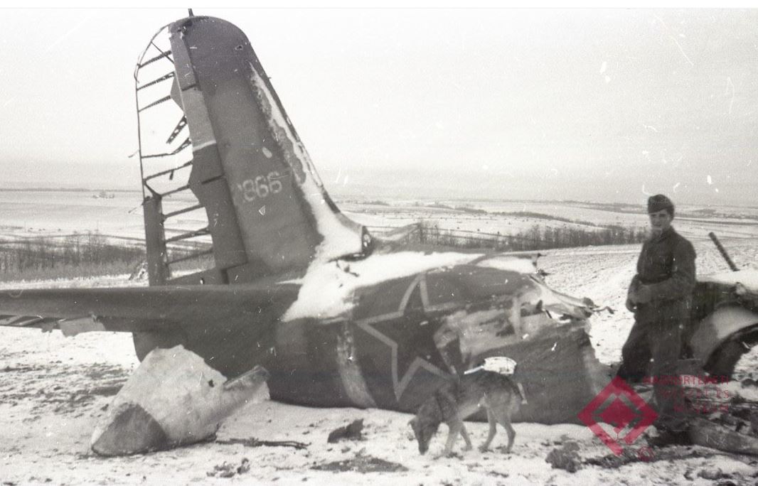 Illésfalvi úr könyve szerint december végén súlyos elhárítóharcokban vettek részt tőlünk északra, amit a Woynarovicz -fotó bizonyít egy lelőtt IL-2 csatarepülőről (Tóth Ferenc úr, a roncskutatás egyik hazai úttörője a gépet A-20 “Boston” típusként azonosította.) (1944. december,foto: W.E., forrás: Hadtörténeti Fototár)