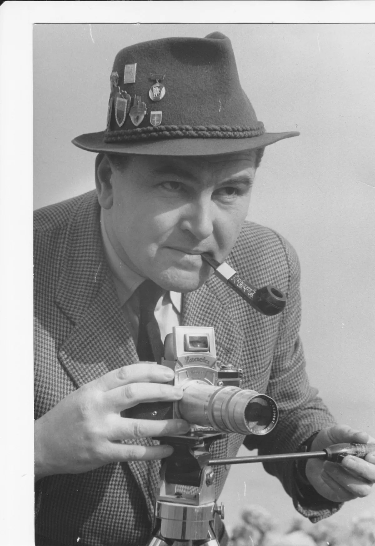 A professzor az Exacta-val. A kép keletkezését az ötvenes évekre teszem, 1952 utánra (forrás: honvédelem.hu)