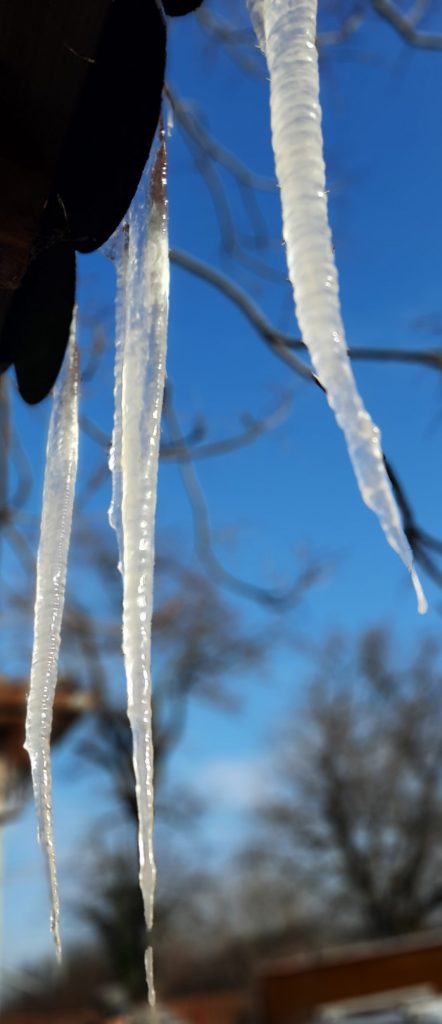 Minden évszakban volt szín, érdekesség, ha megláttuk. Februárban hosszú jégcsapok lógtak a tetőről. Ha már odasütött a Nap, olvadva csöpögni kezdett, apró szivárványok látszottak rajta.