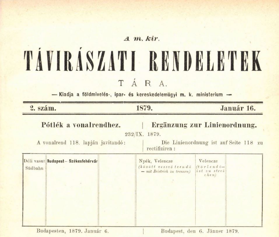 Összegezve: A tó déli partjának vasútja viszonylag korán rendelkezett távíróval, de egyelőre nem tisztázott, pontosan mikortól. A hivatkozott közlöny 1850-től számos részletében, hatósági úton szabályozta a távíró lakossági szolgáltatási díjait, azok illetékességi körzetét, a közlés és kézbesítés díjszabását.