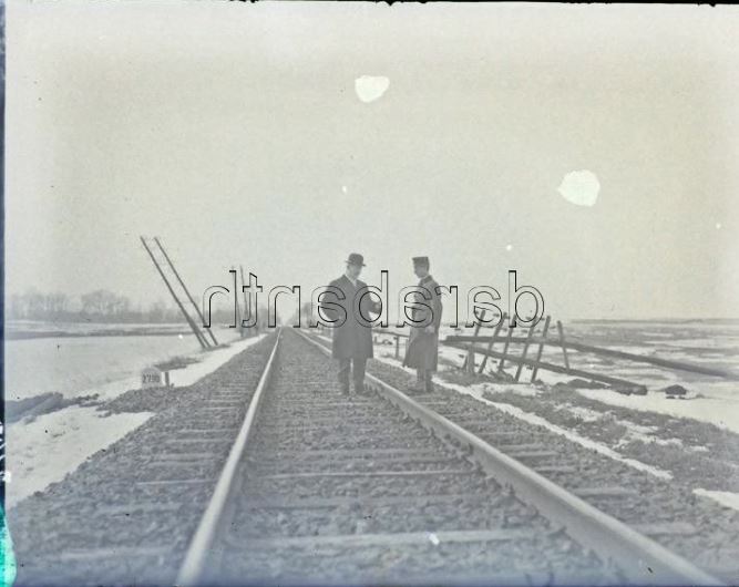 Nem tudni biztosan, a Déli Vasút távíróoszlopai a sín melyik oldalán álltak a tó környékén. Ha sín mellett készültek, a sínnek a fotón látható munkásoktól jobbra kellett lennie. (Ezt az azóta talált más fotók megerősítik.)