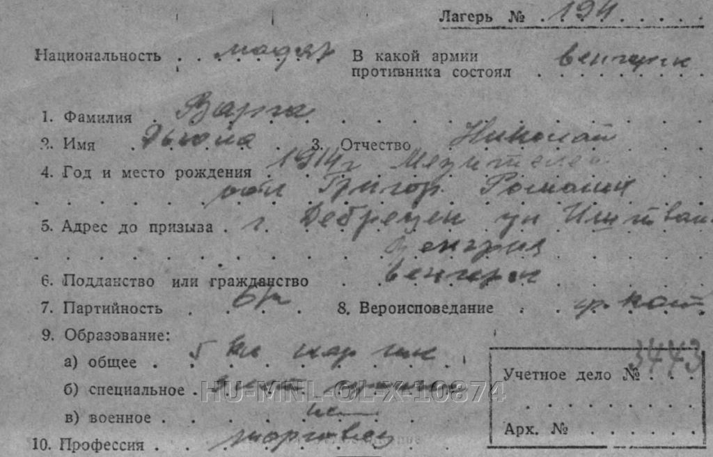 Ez a most megírt karton arról tájékoztatott, hogy Nagyapa őrmesteri rangban esett hadifogságba (sosem mondta ezt, az utolsó tábori levelezőlapján szakaszvezető szerepelt).
