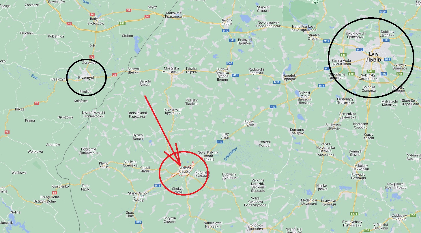 A hely a neten ma „Szambir” -néven ismert járási székhely, 34 ezer körüli lakossal, az első világháborúból emlékezetes Przemysl-től talán 60, Lvovtól (ma: Lviv, de volt már Lemberg is…) kb 80 kilóméterre délre.