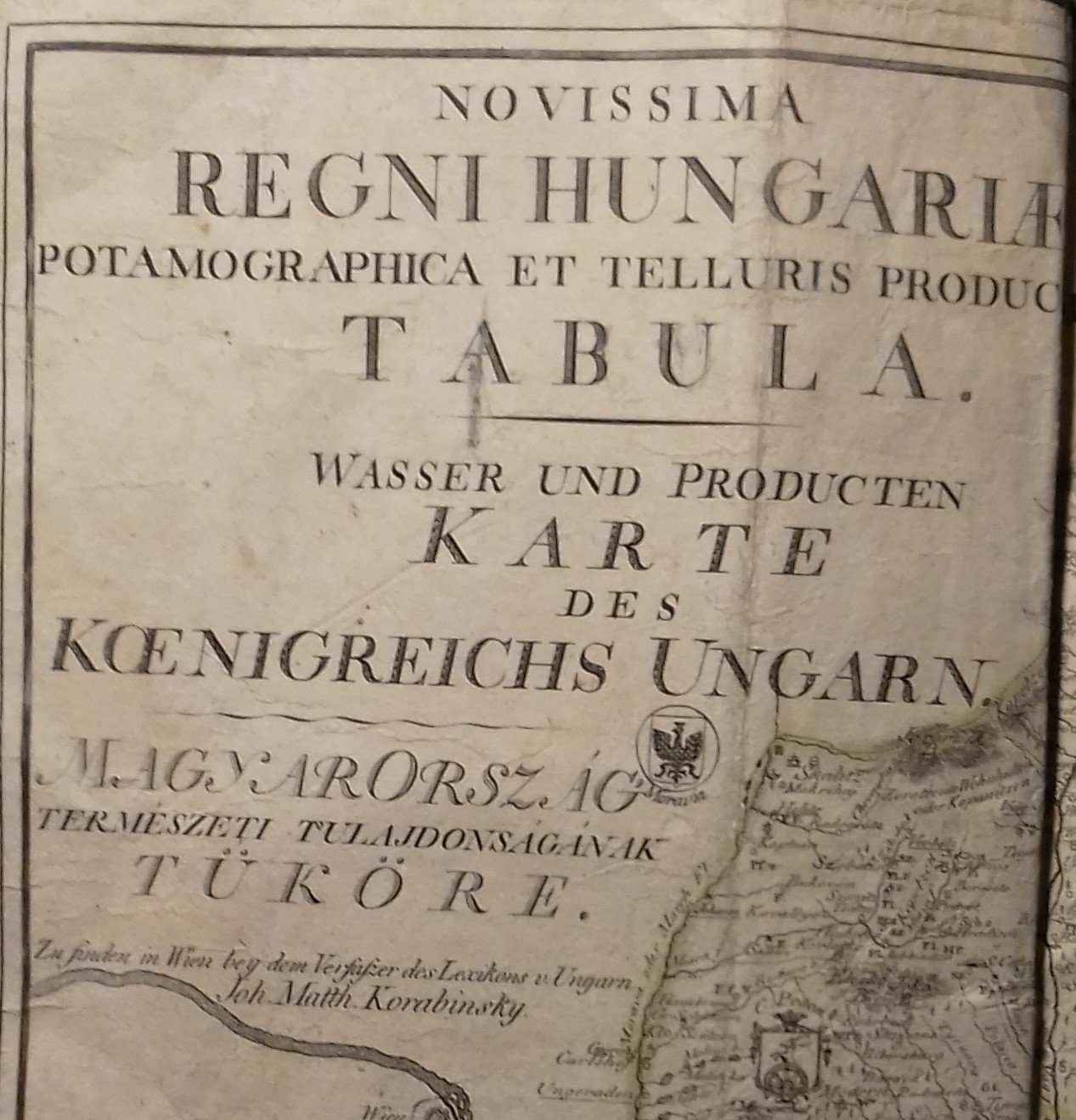 A korai, XVIII. század végi magyar térképészet jeles képviselője volt a hányatott sorsú pozsonyi Korabinszky János Mátyás, akinek azonban elsősorban valamivel későbbi megyei térképei közismertek. Az ő igen ritka, 1791-ben, Bécsben megjelent három nyelvű (latin-német-magyar című és jelmagyarázatú) Magyarország-térképe az ország erőforrásait veszi számba, magyar címe „Magyarország természeti tulajdonságának tüköre”. (A térképrajzot az ugyancsak pozsonyi születésű Junker Keresztély (a lap alján: Junker, Pannonius) metszette rézbe.)