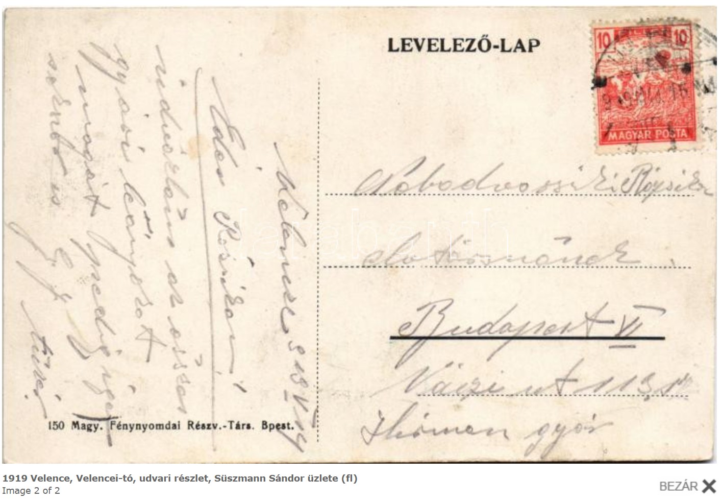 Ami Velencét illeti, Süszmann Sándor boltosnak, úgy tűnik, semmi nyoma nem maradt az alább közölt képeslapon kívül.