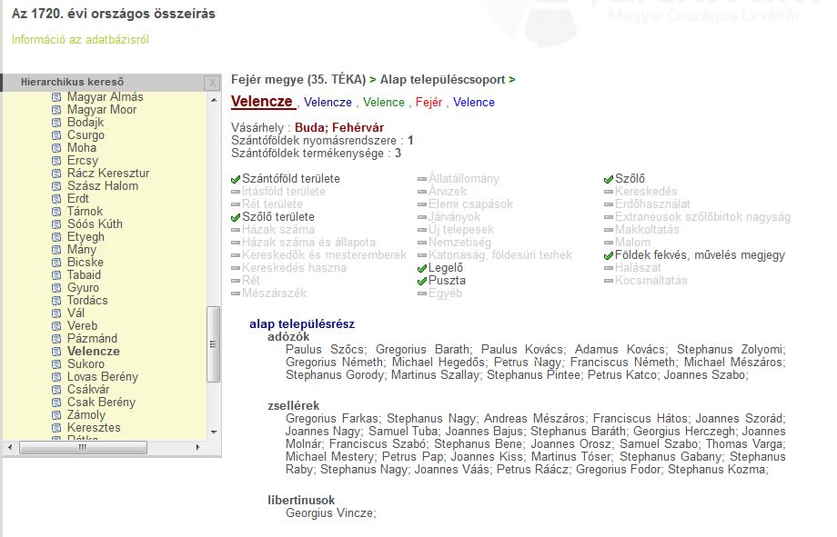 Az 1720-as Összeírás adatai